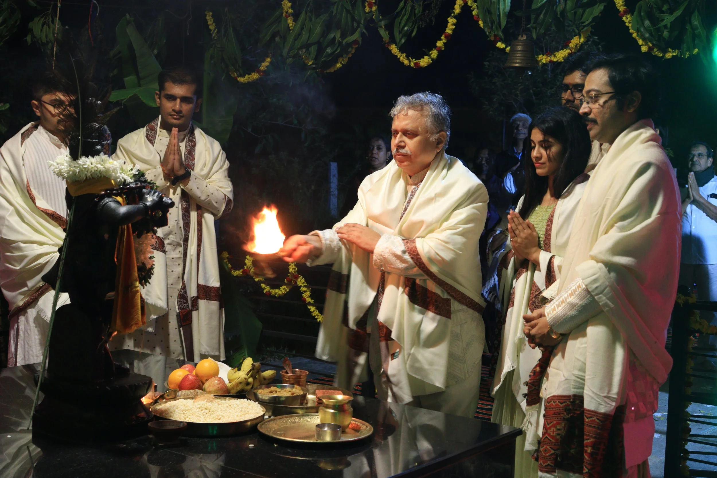 On July 20, 2025, A Dhyan Mandir was inaugurated by Sri M in a simple yet warm ceremony, attended by a select group of those who have contributed towards this elegant meditation hall becoming a reality. Sri M unveiled the beautifully crafted ‘Aum’ while inaugurating the Dhyan Mandir for Sadhaks from all walks of life. The all-inclusive symbol of ‘OM – the Pranava’, the soundless sound pervading the Cosmos is the only point of focus in this meditative space, to explore the inner being. He reminded us that this symbol, which represents the Pranava or the all-pervading Supreme Brahman, is everywhere and is responsible for the manifestation of everything around us. It is the bridge that makes one realise that which is there is also here.