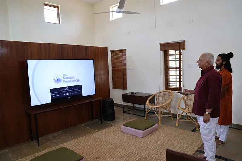 The audio-visual section of the library was inaugurated by playing a brief film giving an overview of the entire campus and the ongoing activities. The library today has books from various traditions, which seekers can access as aids towards their journey of self-knowledge. Screenings of Sri M’s talk are regularly held as part of self-retreats