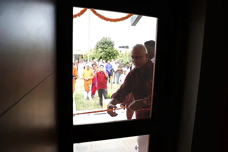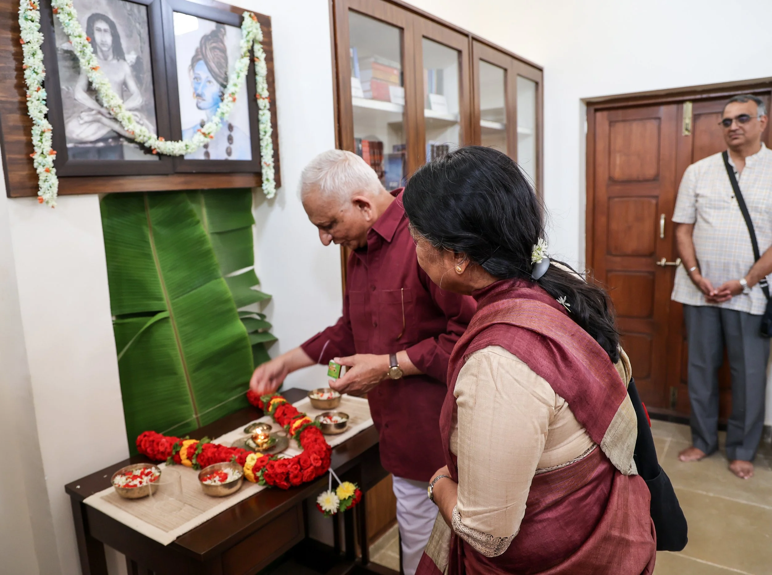 At the Swadhyaya Kshetra – library, Sri M lit the lamp of Shraddha in front of Sri Guru Babaji and Sri Maheshwarnath Babaji, opening the centre for everybody.